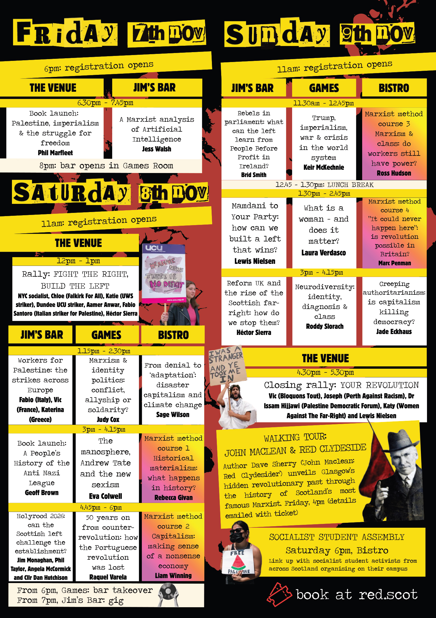 Scotlands largest annual anti-capitalist event, RedFest is a forum for the left and activists across Scotland to discuss our collective response to the crises affecting working class people and the planet.